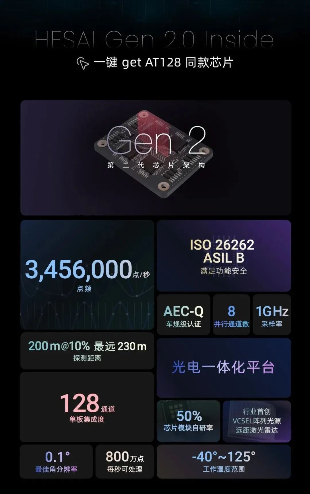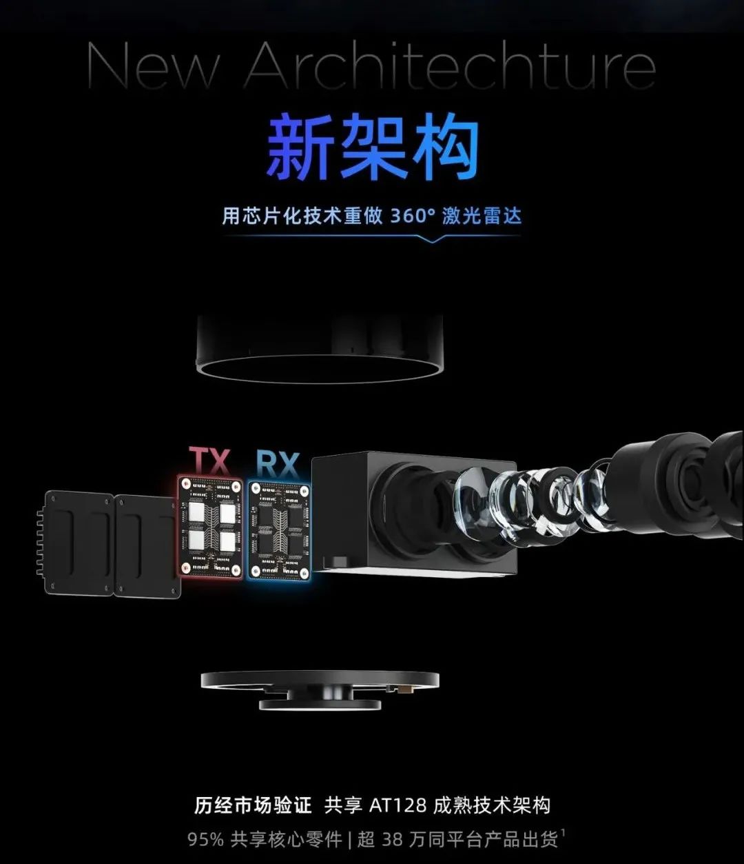 据介绍,禾赛OT128 共享 AT128 成熟技术架构,°激拥有 345.6 万点 / 秒点频