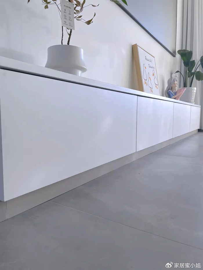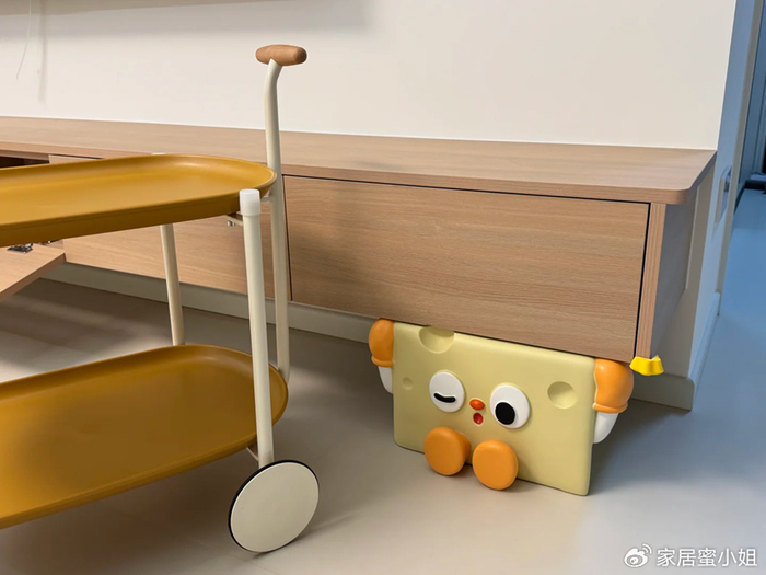 比如家里的茶几 ,电视柜,浴室柜,都可以选择悬空15厘米的设计,这样不管是扫地机器人还是洗地机都能够直接钻进去打扫,非常的方便 。