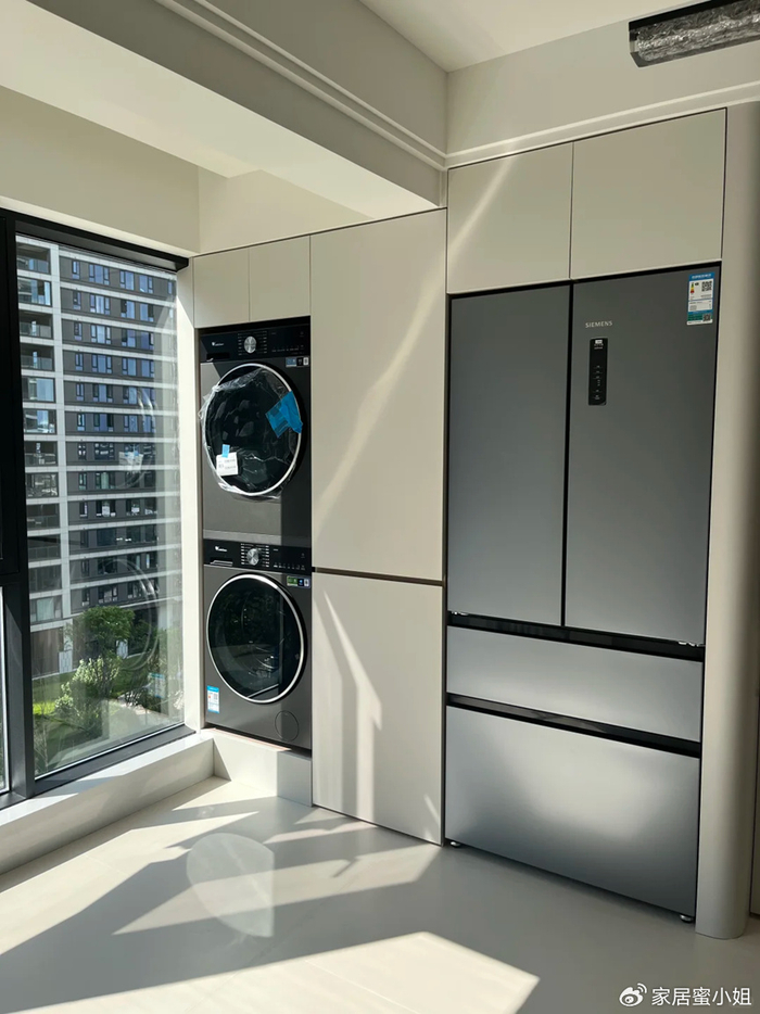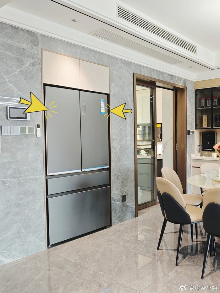 与其如此 ,大家还不如在装修的时候就直接将家电嵌进墙里,这样就不用担心家电的顶部会出现积灰的情况,也不用反复的擦拭了。