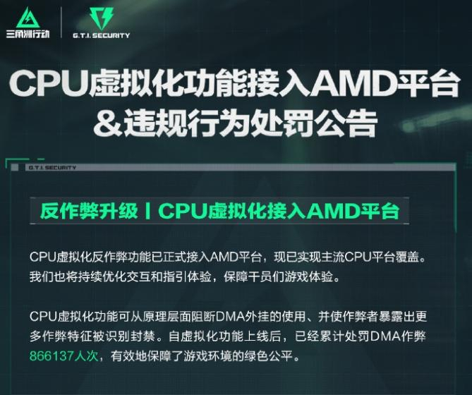 7月30日 ,外挂腾讯游戏《三角洲行动》发布微博宣布,封腾反作其CPU虚拟化反作弊功能已成功接入AMD平台,讯游戏称行动实现了对主流CPU平台的角洲全面覆盖 。这一举措进一步强化了游戏反作弊能力,弊功为玩家营造绿色公平的盖主三角洲pc端透视辅助竞技环境提供了坚实技术支撑