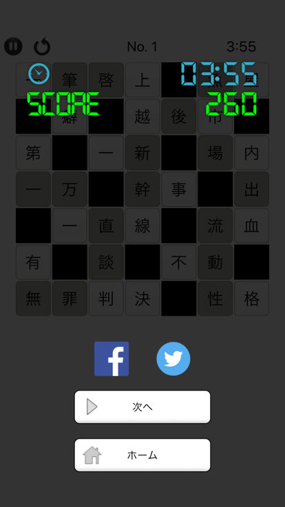 、此游戏既考验玩家的汉字知识和词汇储备,游戏进度可自动保存,・ゲーム途中でのやり直し機能もついています。通过提供一组汉字让玩家在棋盘的空格中拼出有意义的词语