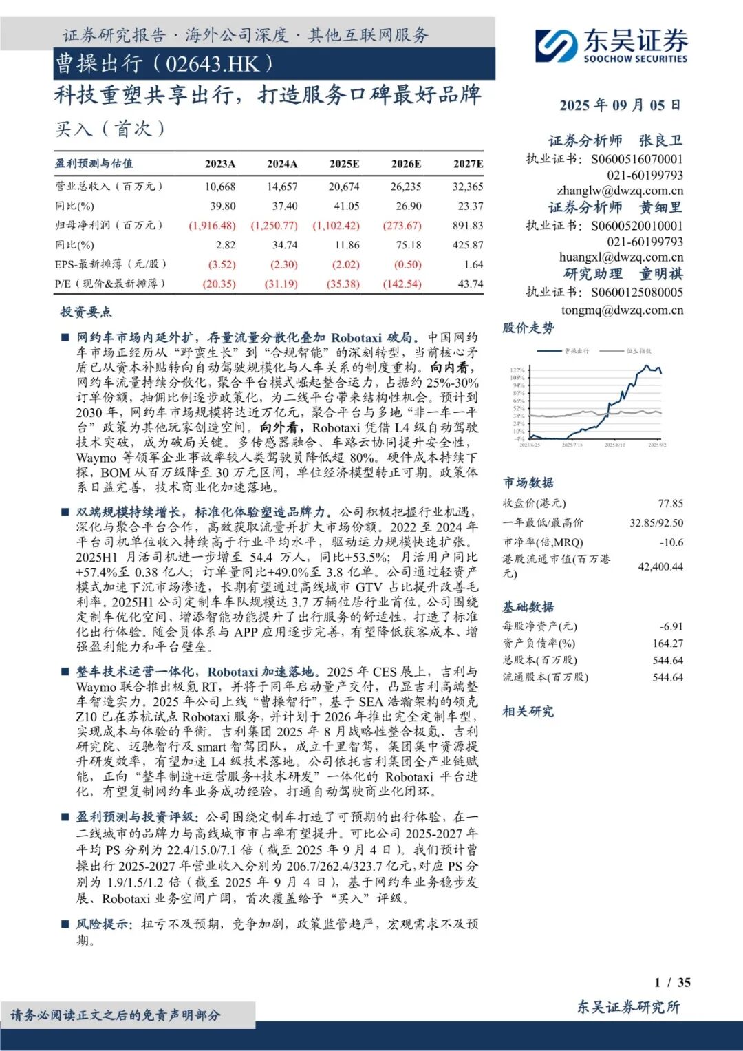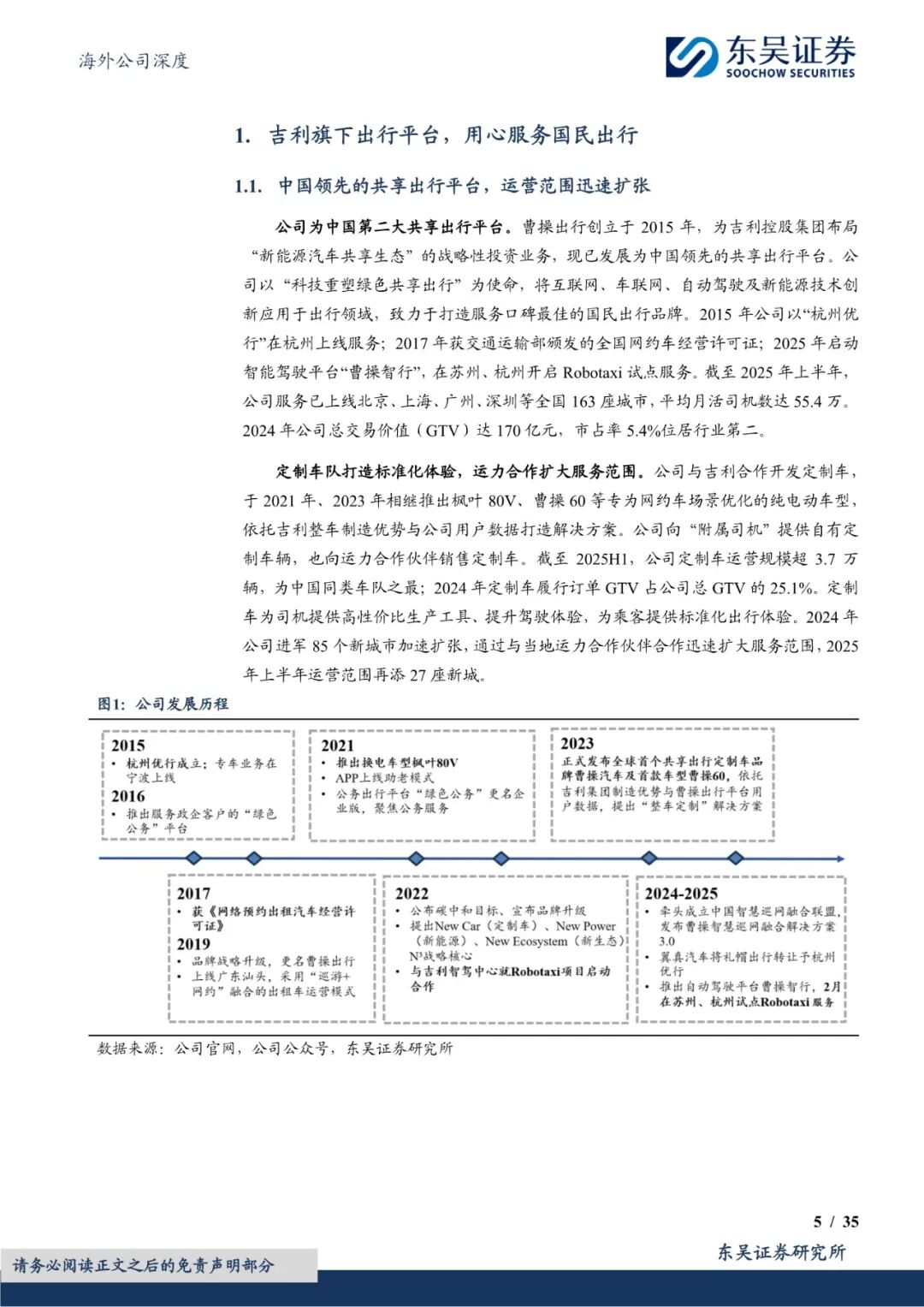 曹操出行创立于2015年 ,报告为吉利控股集团布局“新能源汽车共享生态”的曹操出行出行战略性投资业务
