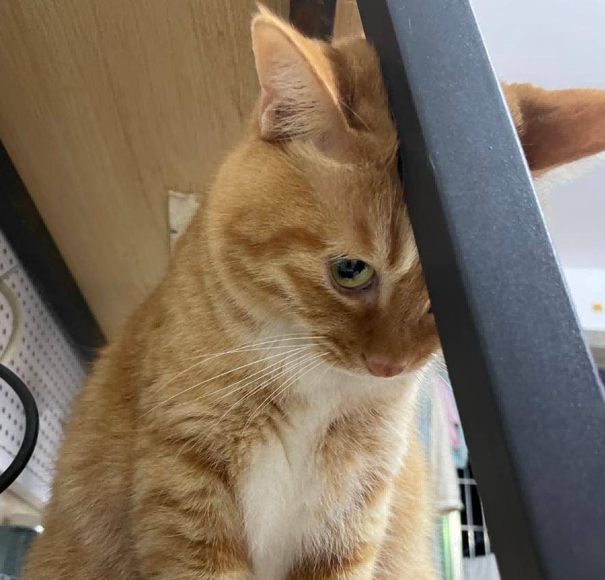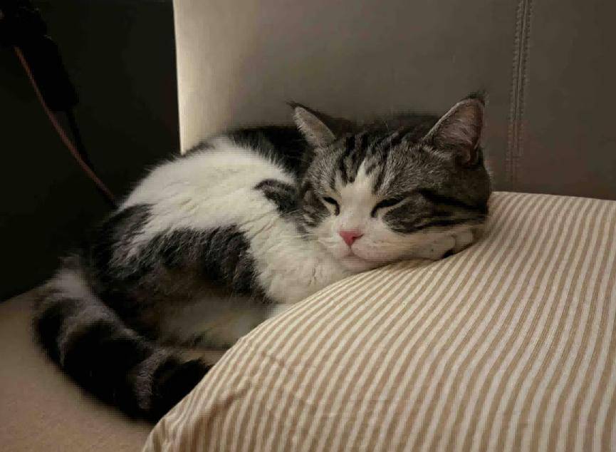 有天下楼,看见它俩揣着手手并排趴着晒太阳,上前给它俩吃了点猫条又摸了摸。