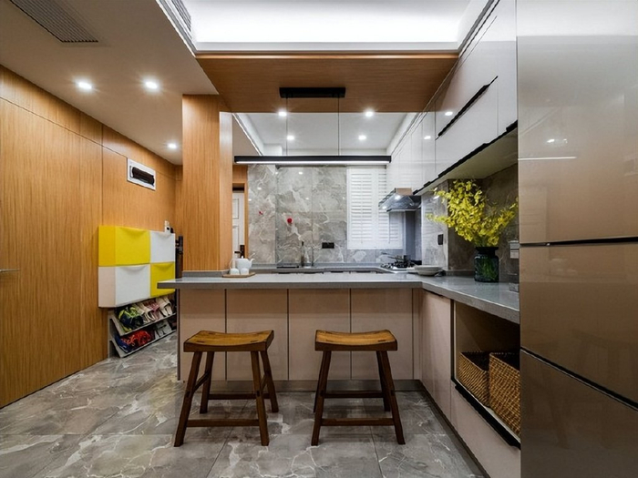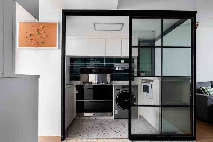 传统的封闭式厨房会影响到家里的采光和通风 ,在做饭的时候,厨房里的采光也不太好